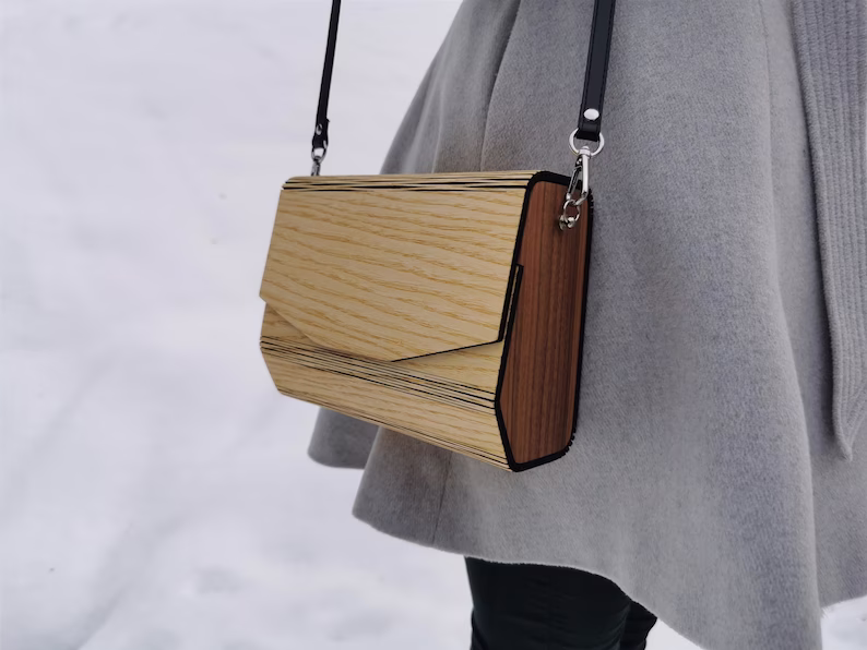 The wooden purse is made of a combination of Ash wood, and American Walnut. The purse is extremely lightweight and comfortable to carry. It has enough space for all the accessories that every lady should have with them. Nevertheless, it remains elegantly small. The woman’s purse closes with hidden magnets built into the purse.